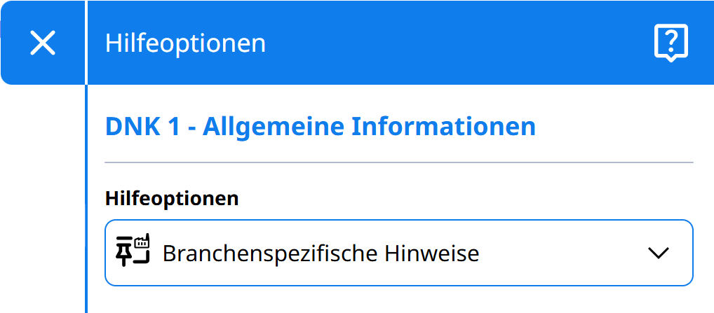 Die Hinweise und Beispiele sind direkt in der DNK-Plattform unter „Hilfeoptionen“ integriert. Je nachdem welche Branchenzuteilung (NACE-Codes) das Unternehmen im Profil angibt, bildet die Plattform die passenden Hinweise zu den jeweiligen VSME-Datenpunkten ab.